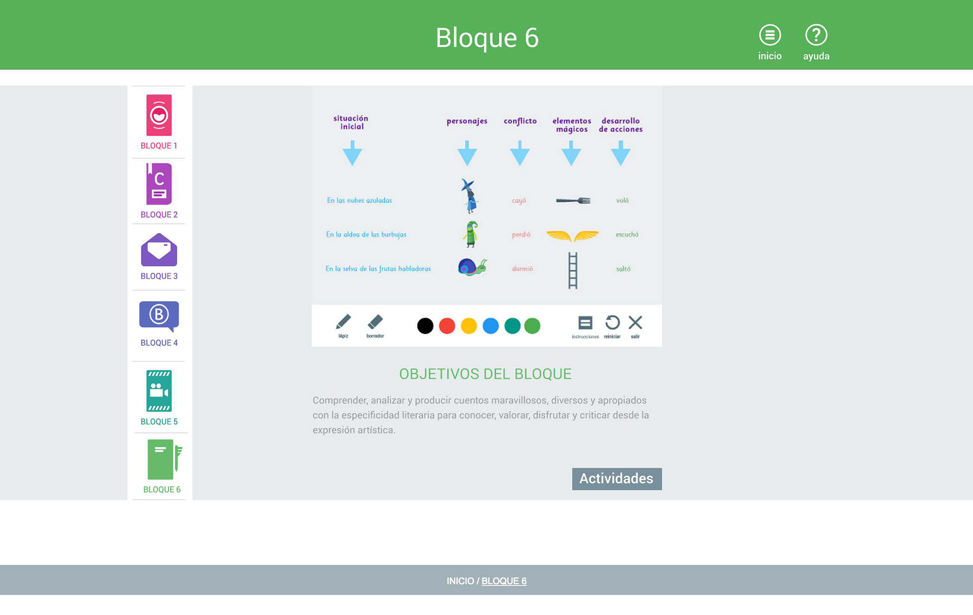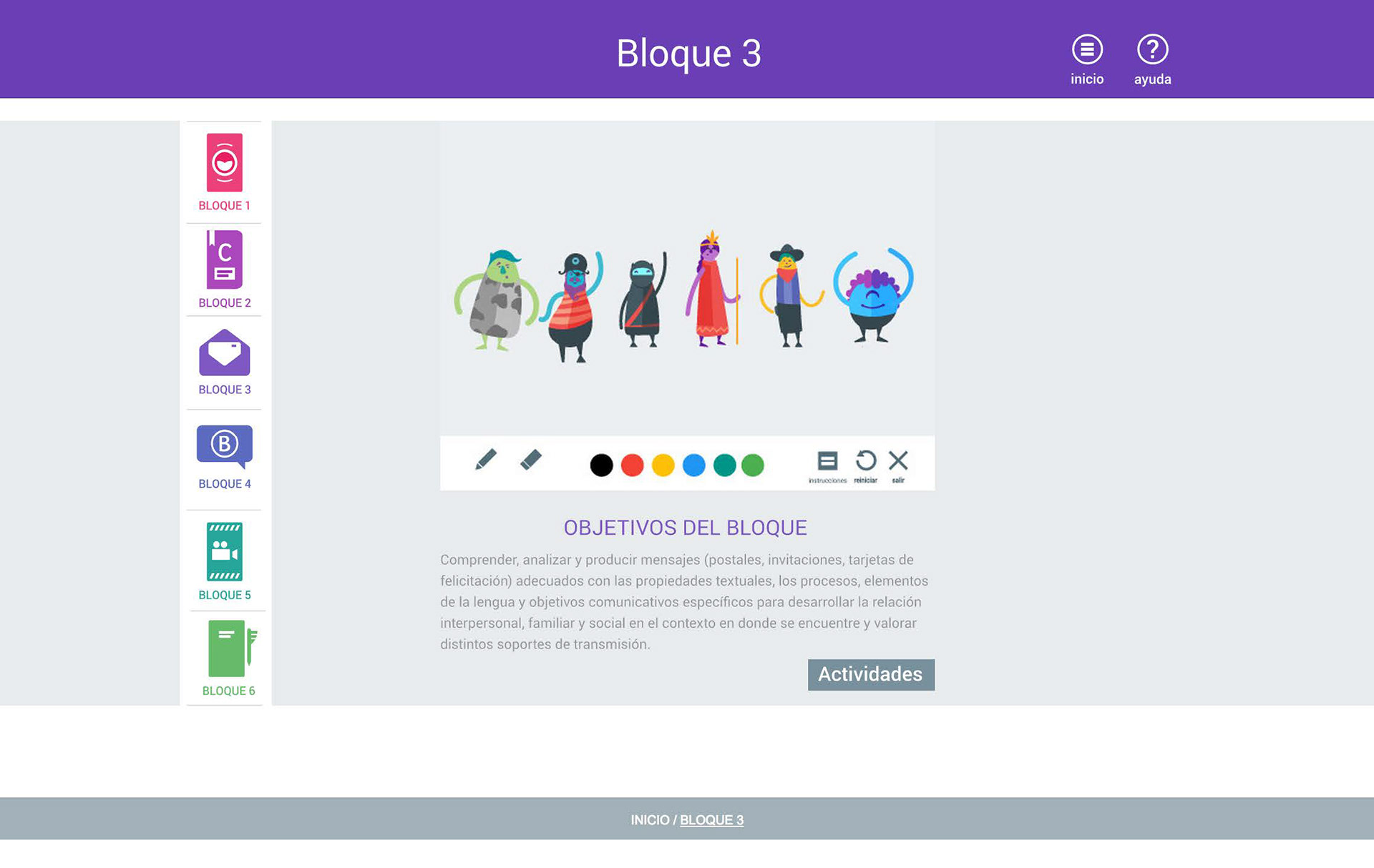 Home, Blocks (1-6), Activities (1-6), and Help.