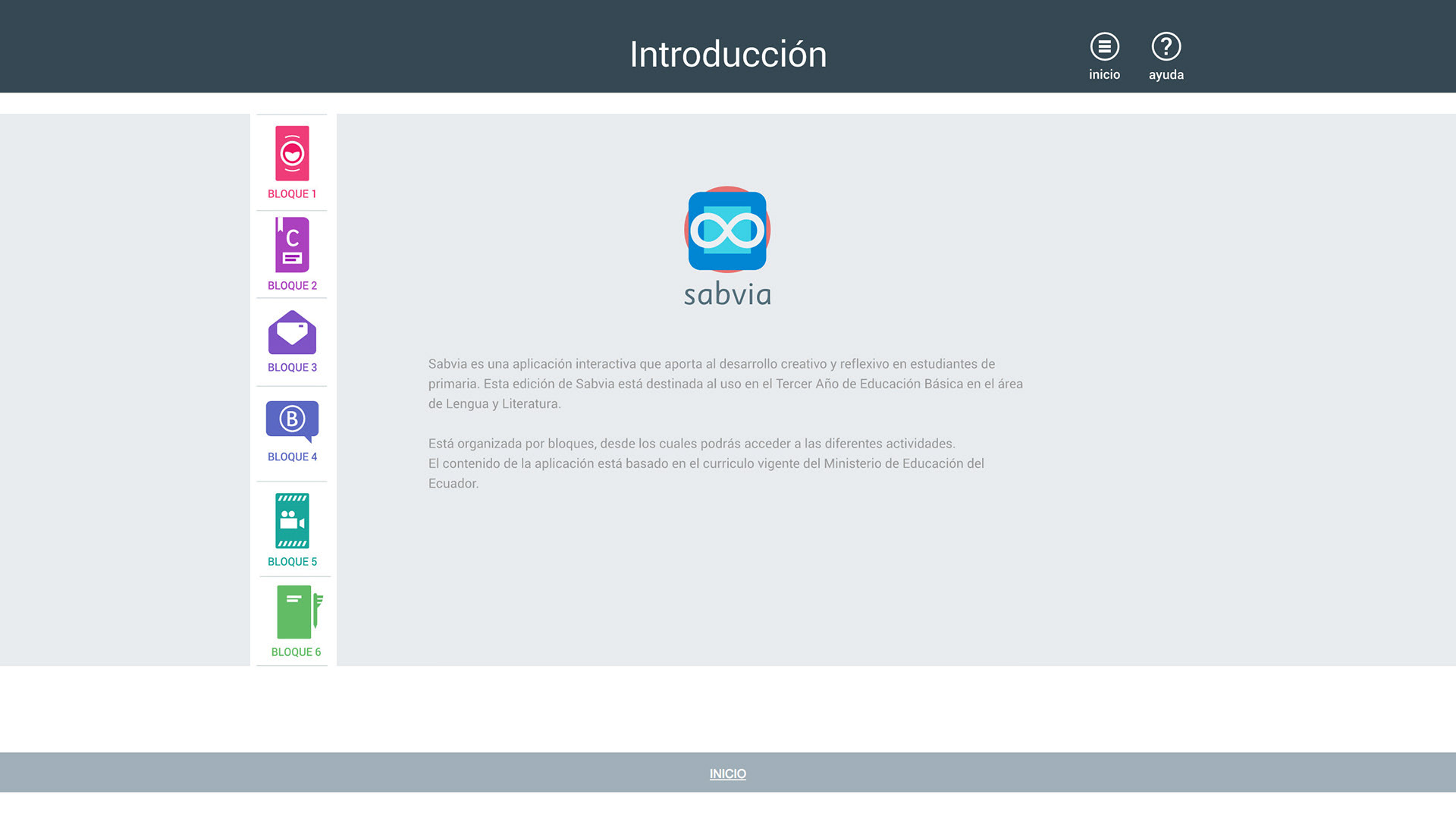 The Blocks screens showcases a gallery of preview images for each activity, along with a brief description of the objectives each block fulfills.
